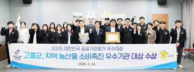 25일 고흥군(군수 공영민)은 지난 24일 국회의원회관 대회의실에서 성황리에 열린 ‘2026년 대한민국 공공기관평가 시상식’에서 지역 농산물 소비 촉진 우수기관으로 최종 선정돼 영예의 '우수대상'을 수상했다고 밝혔다. 대한민국 국회 공공기관평가 우수대상 조직위원회가 주최하고 국회 상임위원회 등이 후원한 이번 시상식은 중앙 및 지방 공공기관을 대상으로 행정 혁신과 지방행정 성과를 엄격히 종합 평가해, 고흥군을 비롯한 총 12개 우수 지자체와 기관을 선정했다.