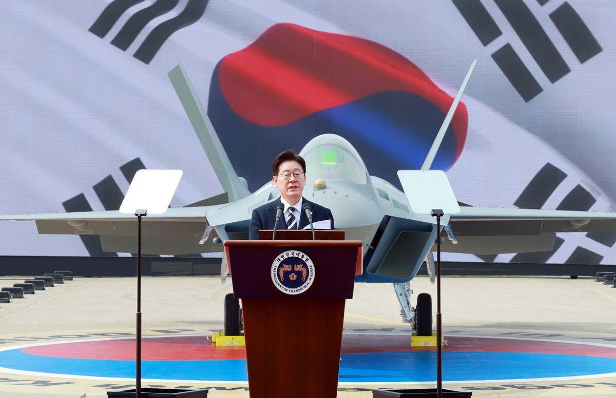 이재명 대통령은 "마침내 대한민국의 땅과 바다에 이어 하늘에서까지 우리 기술과 의지로 평화를 지키는 무기를 보유하게 됐다"라며 "자주국방의 위용을 떨치게 된 것"이라고 밝혔다.