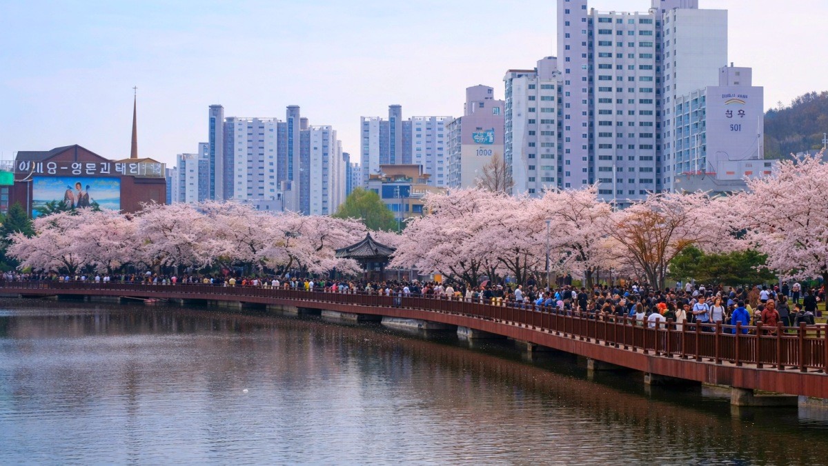 또 지하철 운천역에서 저수지로 들어오는 초입 구간에는 나무들이 촘촘하게 심어져 있어 머리 위로 벚꽃이 맞닿는 '벚꽃 지붕'이 형성된다. 매년 3월 하순부터 4월 초순 사이에 가장 화려한 벚꽃 터널을 만날 수 있다.
