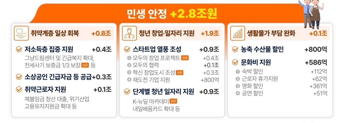 에너지 취약계층에 대한 지원도 추가된다. 등유와 LPG를 사용하는 가구에는 에너지바우처 5만원을 더 지급하기로 했다. 농어민에게는 비료와 사료 구매 비용 일부를 지원해 생산비 부담을 낮춘다는 계획이다.