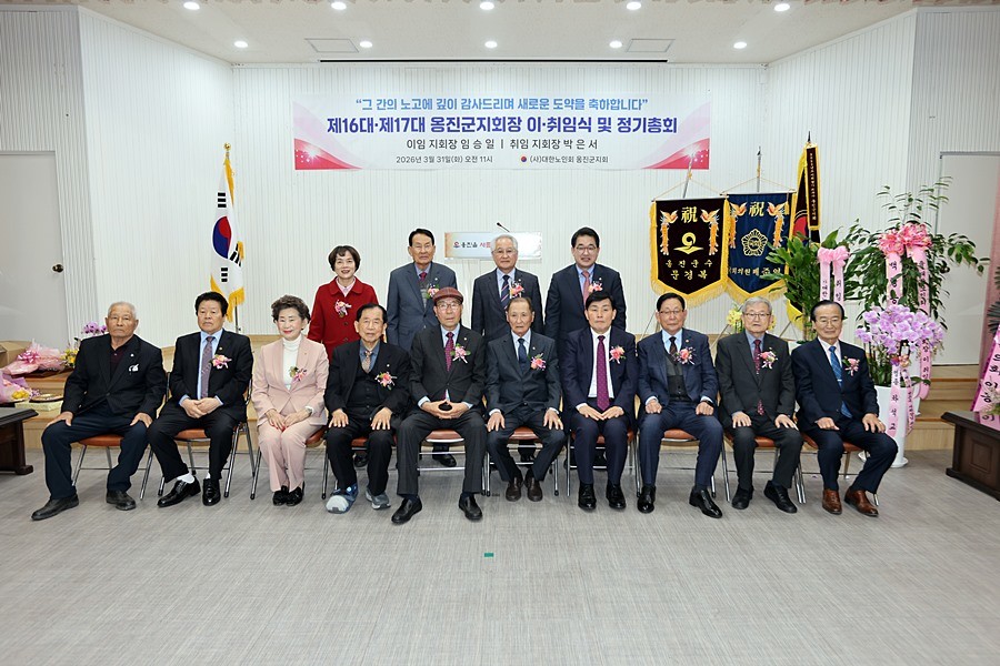 인천 옹진군(군수 문경복)은 31일 옹진군 농업기술센터에서 대한노인회 옹진군지회 ‘2026년 정기총회 및 제16․17대 지회장 이·취임식’이 개최됐다고 밝혔다.