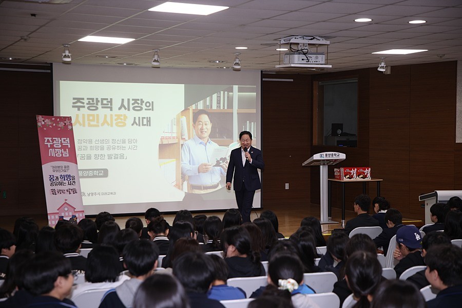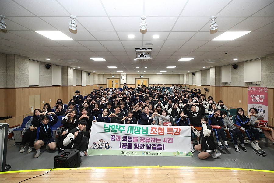 경기 남양주시(시장 주광덕)는 1일 풍양중학교에서 전교생을 대상으로 ‘꿈을 향한 발걸음’이라는 주제의 진로특강을 개최해 학생들과 소통의 시간을 가졌다고 밝혔다.