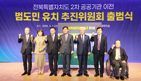 도는 1일 도청 대회의실에서 ‘전북특별자치도 2차 공공기관 이전 범도민 유치 추진위원회’ 출범식을 개최했다. 출범식에는 추진위원회 위원을 비롯해 정치권, 경제계, 학계, 언론, 유관기관, 도민 대표 등 200여 명이 참석했다. 이번 출범식은 정부의 공공기관 이전 논의 본격화에 맞춰 공감대를 확산하고 유치 분위기를 조성하기 위해 마련됐다.