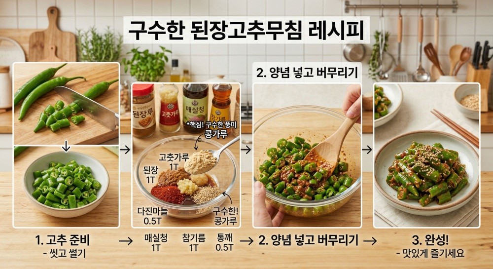 입맛이 떨어지기 쉬운 계절일수록 밥상을 살리는 건 거창한 요리가 아니라 간단한 반찬 하나다. 특히 아삭한 식감과 구수한 양념이 어우러진 고추무침은 밥 한 공기를 순식간에 비워내게 만드는 대표적인 집밥 반찬이다. 이때, 기존의 된장고추무침에 '콩가루'를 더해 맛을 끌어올리는 방법이 있어 소개한다.