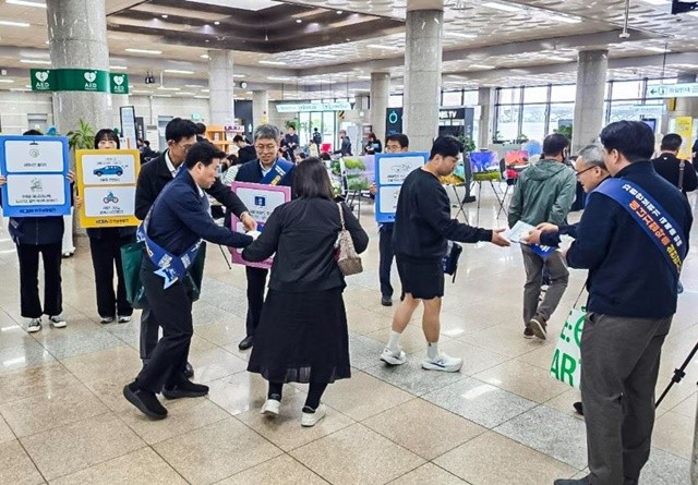 이날 현장에서는 일상에서 쉽게 실천할 수 있는 ‘국민행동 12대 실천요령’을 중심으로 참여를 독려했다. 주요 내용은 ▲승용차 요일제 참여 ▲대중교통 이용 ▲근거리 이동 시 도보·자전거 활용 ▲적정 실내온도 유지(난방 20℃, 냉방 26℃) ▲불필요한 조명 소등 ▲카풀 활성화 등이다.