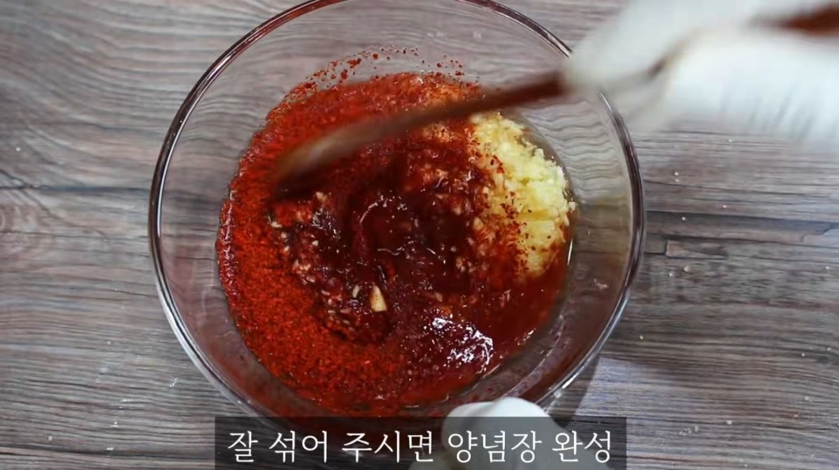 양념장은 고추장 수북이 한 스푼, 참치액젓 한 스푼 반, 설탕 한 스푼, 물엿 한 스푼, 식초 네 스푼, 다진 마늘 한 스푼, 고춧가루 한 스푼을 넣어 만든다. 차게 식은 미역과 준비한 채소들을 한데 모으고, 채소 위에 양념장을 먼저 부어 대충 버무린다. 그 뒤 미역과 양념이 하나가 되도록 손으로 조물조물 섞는다. 마지막으로 참기름 한 스푼과 통깨를 뿌려 마무리한다.
