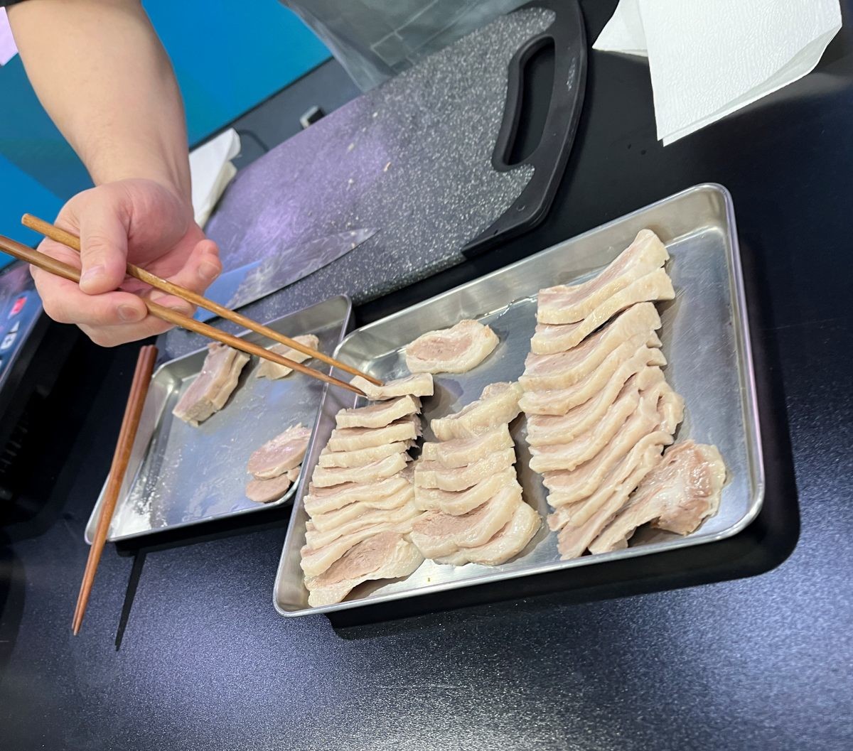 현장에서 공개된 김 셰프만의 수육 꿀팁은 의외로 간단하면서도 명확했다. 그는 "수육을 삶을 때 소금은 생각보다 훨씬 많이 넣어야 한다"고 설명했다. 얇게 썬 수육을 김 셰프가 직접 기자의 입에 넣어주자 잡내 없이 고소한 풍미가 입안을 가득 채웠다. 다른 양념을 찍지 않아도 고기 자체의 감칠맛이 충분했다.