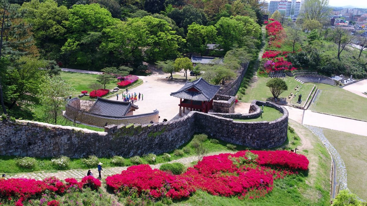 특히 성벽 위에서 고창 시내 전경을 한눈에 조망할 수 있어 관광객들의 발길이 끊이지 않는다. 봄철에 방문하면 성곽을 따라 붉은 철쭉이 흐드러지게 피어 청보리밭의 초록색과 선명한 대비를 이룬다.