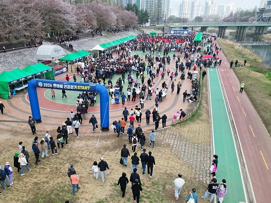경기 의정부시가 지난 11일 중랑천 동막교 인라인 광장에서 시민 수천 명이 참여한 가운데 ‘2026 한마음 건강걷기’ 대회를 성황리에 마무리했다.