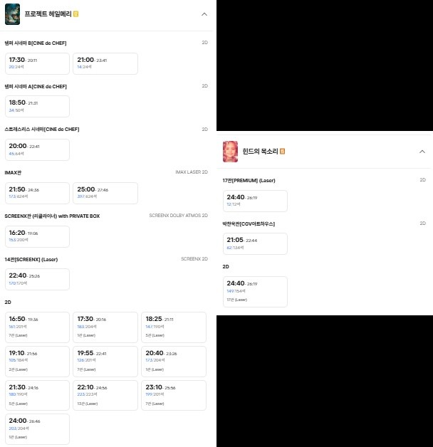 ▷ 영화 마니아 C씨 : "막상 멀리 있는 대형 상영관을 찾더라도 배정된 상영 시간이 이른 아침이나 늦은 심야 등 극단적인 경우가 대부분입니다. 직장 생활을 하면서 이 상영 시간에 맞춰 영화를 보기란 현실적으로 불가능에 가깝죠. 영화를 보고 싶은 열망에 극장 앱을 켰다가도, 결국엔 시간대가 맞는 유명한 대작 영화로 타협하듯 예매하거나 그마저도 끌리지 않는다면 아예 극장 관람 자체를 포기해 버리게 됩니다."