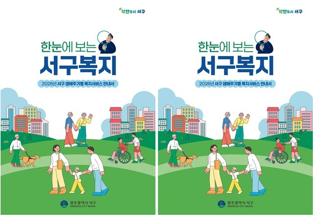 16일 서구에 따르면, 구는 출생부터 노년에 이르기까지 생애주기별 맞춤형 복지서비스를 한 권에 깔끔하게 정리한 「2026 한눈에 보는 서구복지」 안내서를 발간했다. 이번 안내서에는 기존 사업들에 새롭게 추가된 신규 서비스 19개를 더해 총 221개의 알찬 복지사업 정보가 수록됐다.