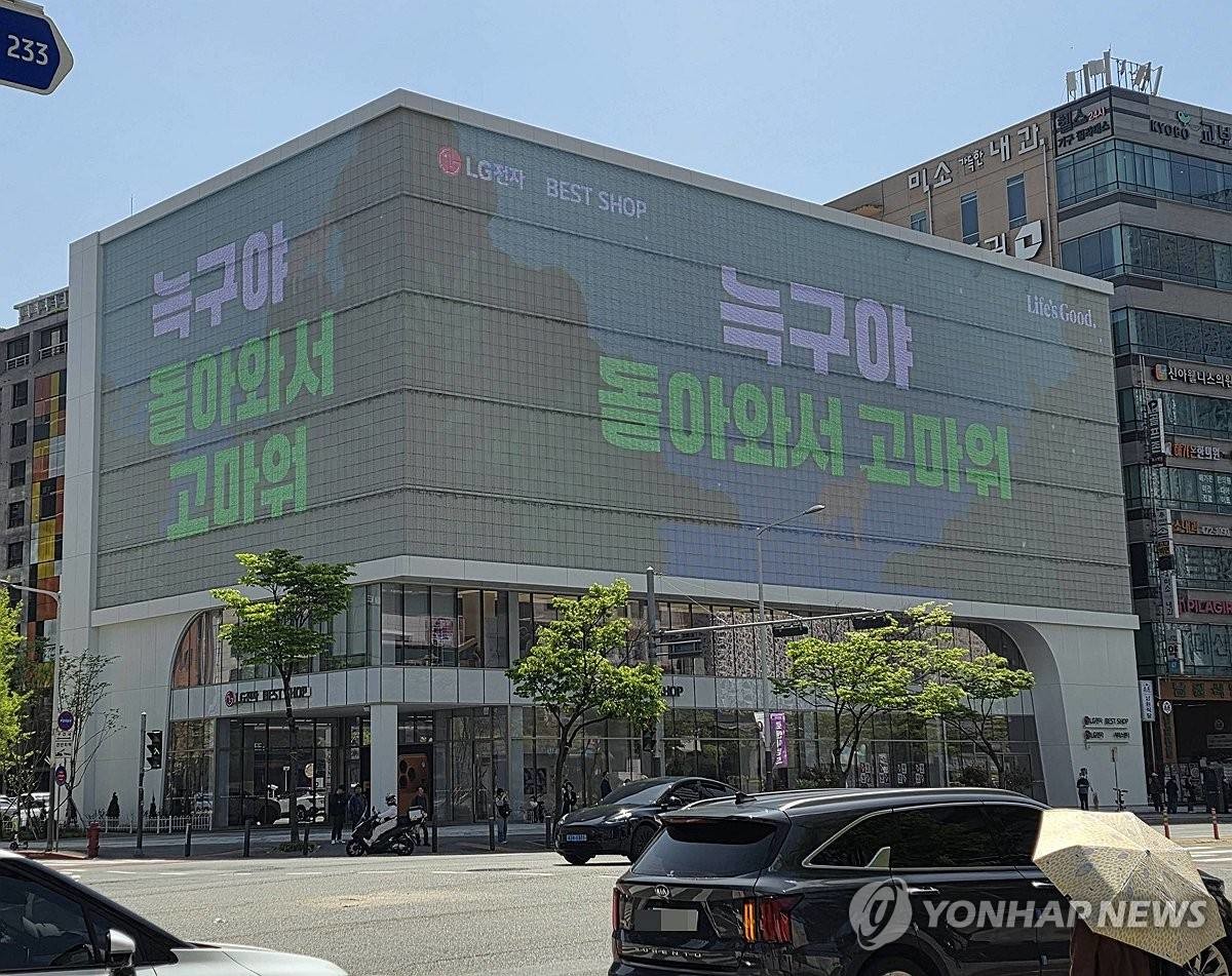 민간 기업의 환영 인사도 눈에 띈다. LG전자 베스트샵 대전본점은 늑구가 생포된 17일부터 대형 전광판에 ‘늑구야 돌아와서 고마워’라는 문구를 송출 중이다. 탈출 기간 내내 무사 귀환을 기원하는 메시지를 내보냈던 점포 측이 생포 소식에 맞춰 발 빠르게 내용을 수정한 것이다. 중고 거래 플랫폼인 당근마켓에는 늑구에게 직접 사인을 받았다고 주장하는 게시물이 올라오는 등 해프닝도 잇따르고 있다.