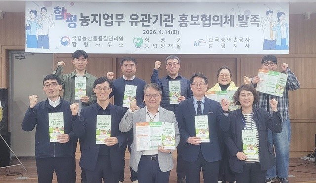함평군은 지난 14일 한국농어촌공사 함평지사 대회의실에서 국립농산물품질관리원 함평사무소(이하 농관원), 한국농어촌공사 함평지사와 손을 맞잡고 ‘농지업무 유관기관 홍보협의체’의 공식 발족식을 개최했다고 20일 밝혔다.