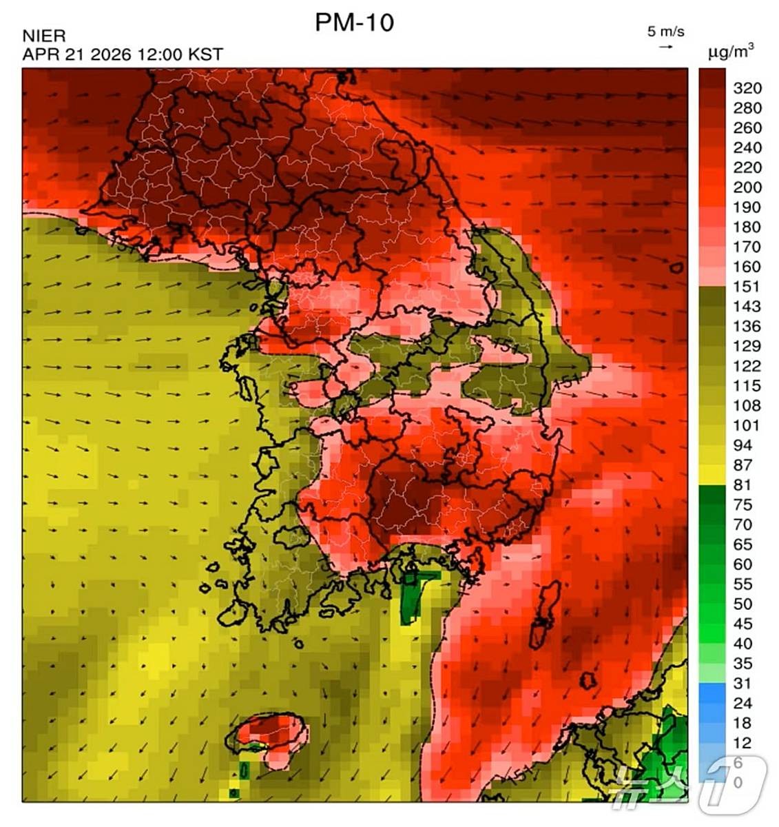 환경공단 에어코리아에 따르면 서풍을 따라 지속적으로 유입되는 황사 영향으로 전 권역의 미세먼지 농도가 높겠고, 늦은 오전부터 오후 사이에는 전남·부산·울산·경남·제주권의 농도가 더 높아질 것으로 예상된다. 실제로 경남을 제외한 대부분 지역에는 미세먼지 주의보가 발효된 상태다. 서울·경기 남부·충청권·광주·전북·대구·경북은 ‘매우 나쁨’, 인천·경기 북부·강원권·전남·부산·울산·경남·제주권은 ‘나쁨’ 수준이 예보됐다. 여기에 PM-10 농도는 늦은 오전부터 오후 사이 강원권·전남·부산·울산·경남·제주권에서 ‘매우 나쁨’까지 치솟을 것으로 예상된다. ‘매우 나쁨’은 미세먼지 예보등급 가운데 최고 단계다. 단순한 탁한 하늘이 아니라, 실제 행동을 바꿔야 하는 경고 신호라는 뜻이다.