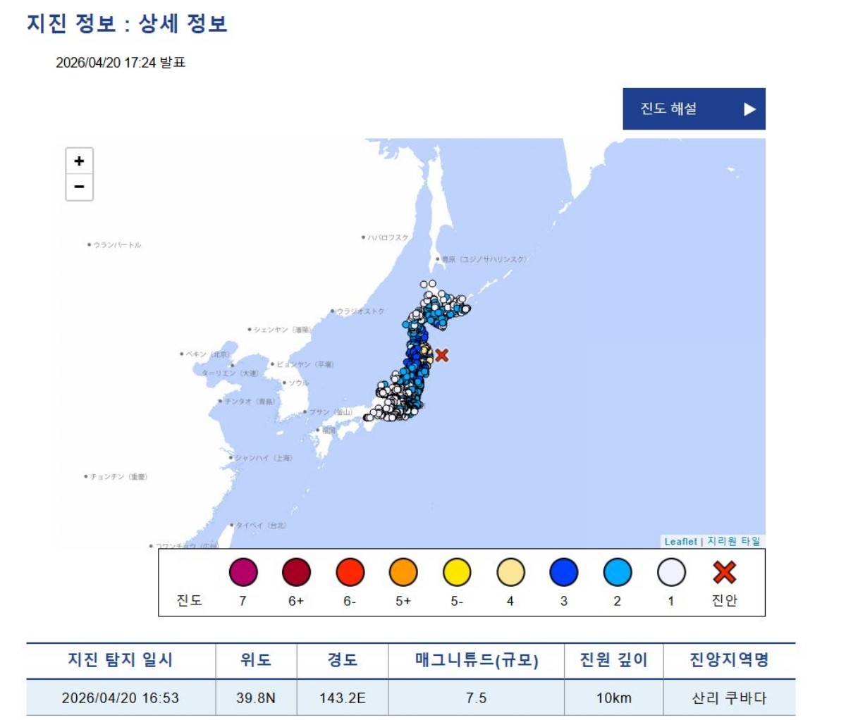 이 같은 경고는 과거 사례와 맞닿아 있다. 일본 기상청은 앞서 비슷한 규모의 강진 이후 같은 해역에서 후속 지진 위험이 높아지는 사례가 반복돼 왔다고 설명한다. 실제로 지난해 12월에도 아오모리현 앞바다에서 규모 7급 지진이 발생한 직후 ‘후발 지진 주의 정보’가 처음 발령되며 일주일간 경계가 이어졌다. 당시 추가 초대형 지진으로 이어지지는 않았지만 일본 기상청은 이번에도 위험이 평소보다 높아졌다는 의미일 뿐 특정 시점의 대지진을 예고하는 것은 아니라고 설명하고 있다.
