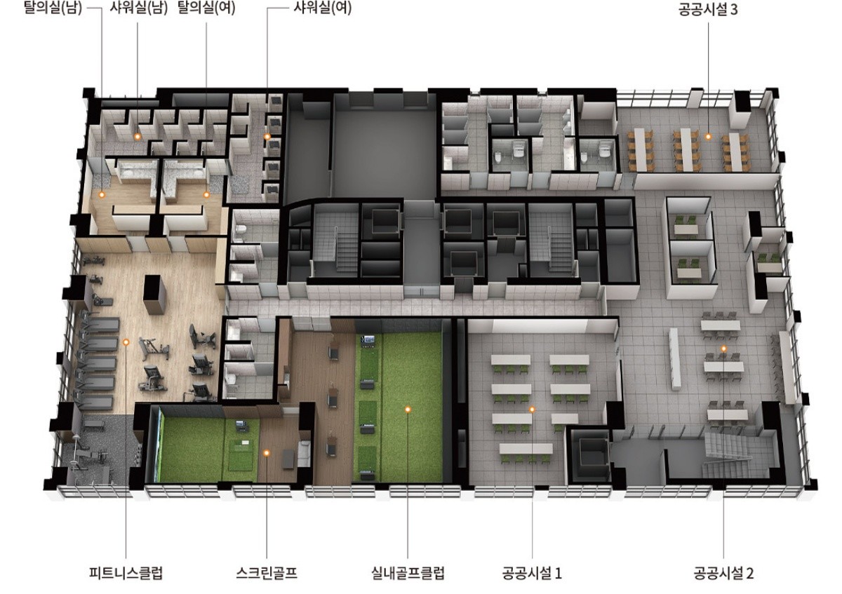 커뮤니티 시설로는 스크린골프장과 골프연습장, 피트니스, 샤워실 등이 조성될 예정이다. 단지 내부에서도 기본적인 여가·운동 기능을 충족할 수 있도록 구성했다.