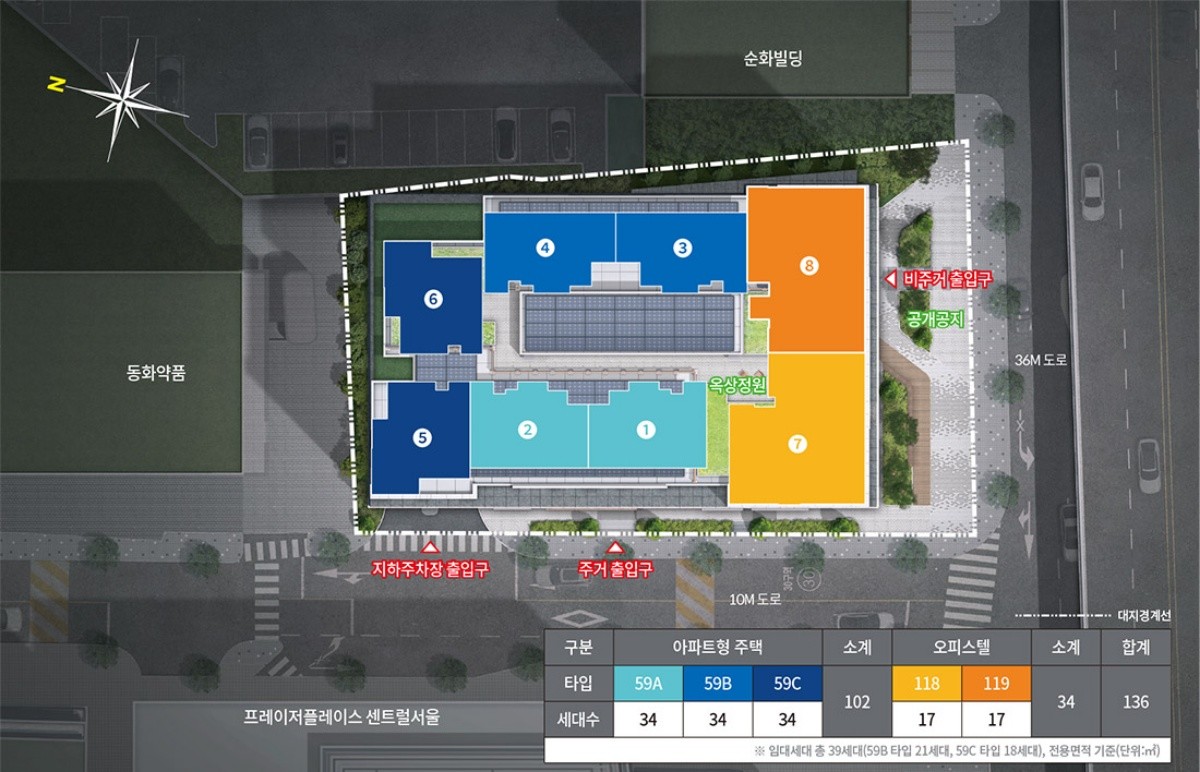 이번 공급은 서울 도심에서 보기 드문 신규 주거 물량이라는 점에서 먼저 눈에 띈다. 특히 공동주택은 전용 59㎡ 단일 면적을 세 개 타입으로 나눠 공급하고, 오피스텔은 118㎡와 119㎡ 중형 면적으로 구성해 서로 다른 수요층을 함께 겨냥했다. 도심에 직장을 둔 1~2인 가구는 물론, 비교적 넉넉한 면적을 선호하는 수요까지 아우르는 구조다.