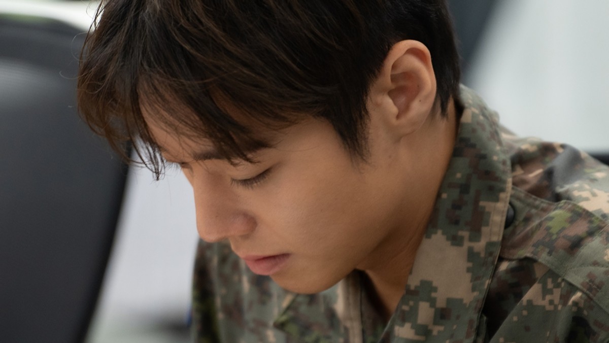 가장 먼저 눈길을 끄는 인물은 이등병 강성재다. 불꽃처럼 타오르는 눈빛과 함께 고무장갑을 낀 채 주방 위 전투를 준비하는 모습은 단번에 시선을 사로잡는다. 당장이라도 화려한 조리 실력을 보일 듯한 그의 모습은 '취사병'으로서 펼쳐질 활약을 짐작하게 하며 캐릭터의 성장 서사에 대한 궁금증을 더한다.