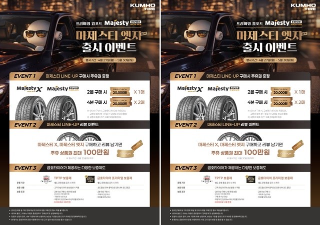 김성 금호타이어 한국영업부문 상무는 “신제품 마제스티 솔루스 EDGE는 기존 히트 제품의 영광스러운 계보를 잇는 모델로, 세단용 프리미엄급 타이어 시장에서 소비자들에게 강력한 인기를 끌 것으로 기대한다”며, “이번 이벤트를 통해 더 많은 고객이 금호타이어의 진화된 기술력과 우수한 주행 성능을 직접 경험해 보시길 바란다”고 말했다.