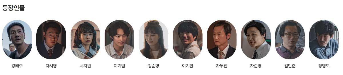 허수아비 등장인물관계도의 중심에는 형사 출신 교수 강태주(박해수)와 검사 차시영(이희준)이 있다.