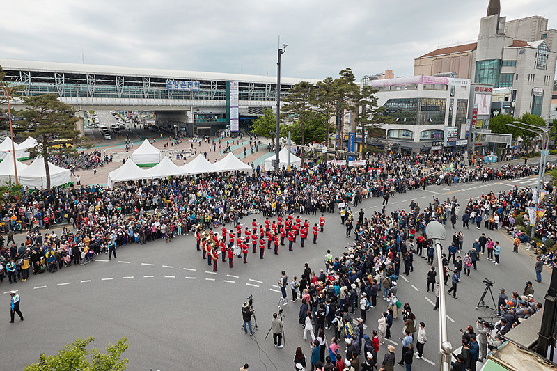 축제의 중심지인 온양온천역 광장 주무대에서는 축제 기간 내내 핵심 공연이 이어진다. 4월 30일 오후 7시에 열리는 개막식에서는 해군본부 의장대와 군악대의 의장 시범이 펼쳐지며 428명의 시민으로 구성된 428 합창단이 웅장한 화음을 선보인다. 이어지는 주제 공연에는 가수 자두, 에일리, 이창섭이 참여해 축제의 열기를 더하며 밤하늘을 수놓는 드론 라이트 쇼가 개막의 대미를 장식한다. 5월 3일 폐막식에서는 미디어 아트 쇼와 함께 YB(윤도현 밴드)의 축하 공연이 예정되어 있다.