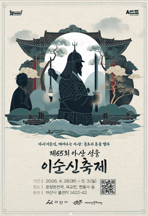 성웅 이순신 장군의 탄신을 기념하고 구국의 정신을 계승하기 위한 제65회 아산 성웅 이순신 축제가 29일부터 5월 3일까지 5일간 충청남도 아산시 온양온천역, 곡교천, 현충사 일원에서 개최된다. 1961년 온양 문화제로 시작해 60여 년의 역사를 이어온 이번 축제는 '성웅 이순신, 축제로 피어나다'를 주제로 이순신 장군의 일대기를 재현한 퍼레이드와 428 합창단 공연, 드론 라이트 쇼 등 다채로운 프로그램으로 시민과 관광객을 맞이한다.