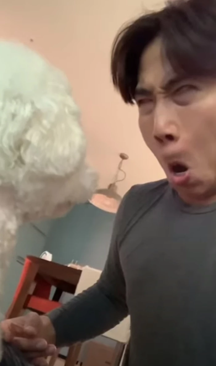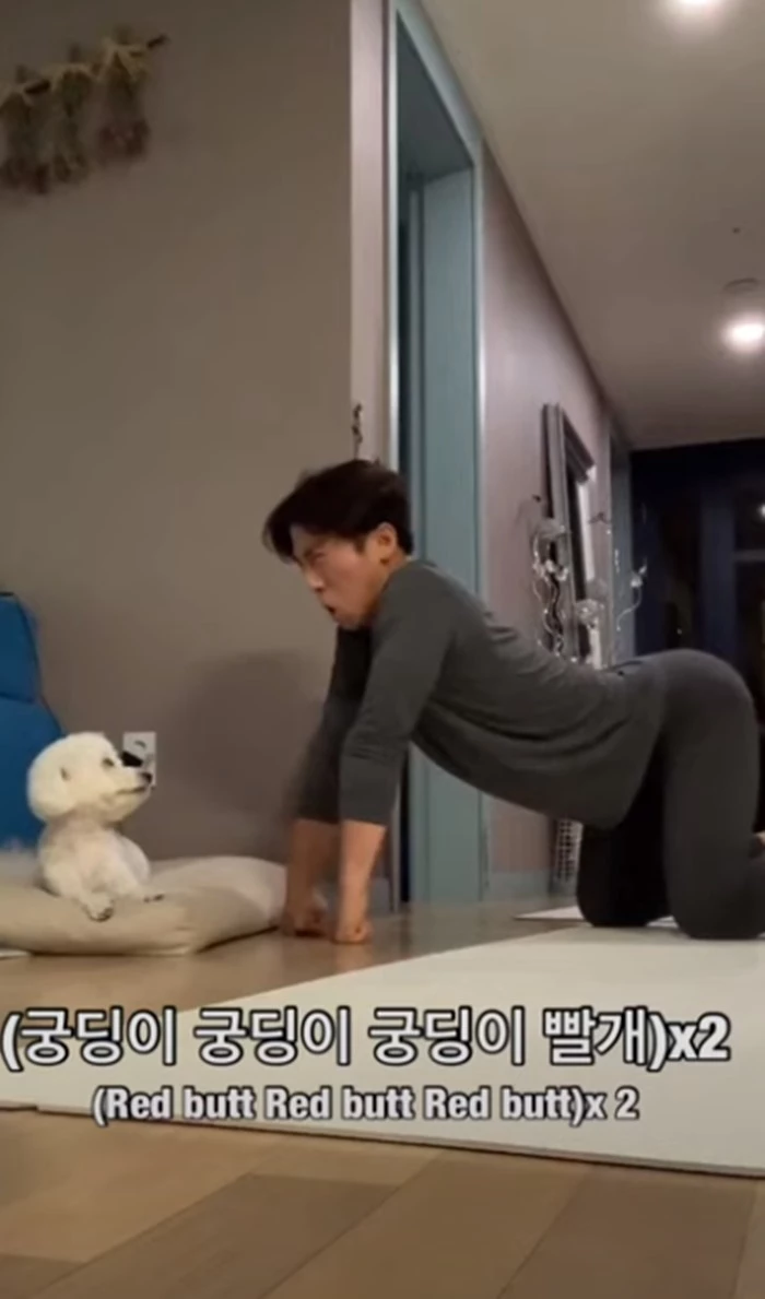 개그맨 유세윤이 반려견 앞에서 '개코 원숭이'를 따라했다.