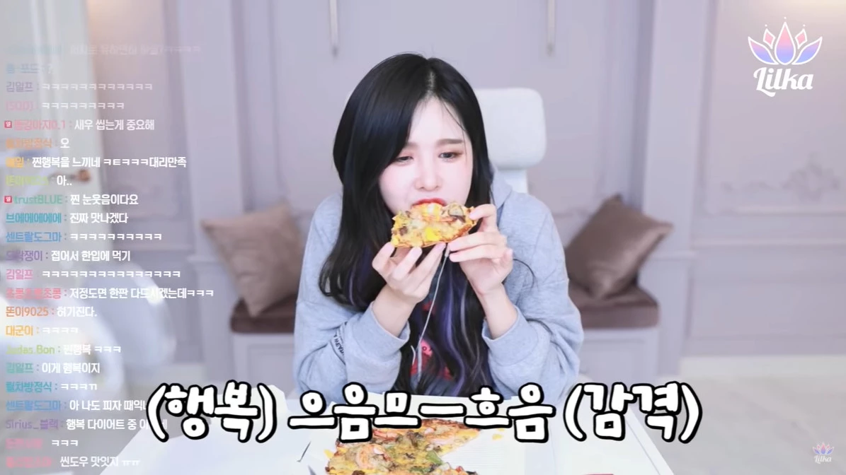 지난 26일 유튜브 '릴카'에 올라온 영상에서 게임을 하던 릴카는 갑자기 먹방을 진행했다. 이날 릴카는 피자 한 판을 통째로 전부 다 먹었다.