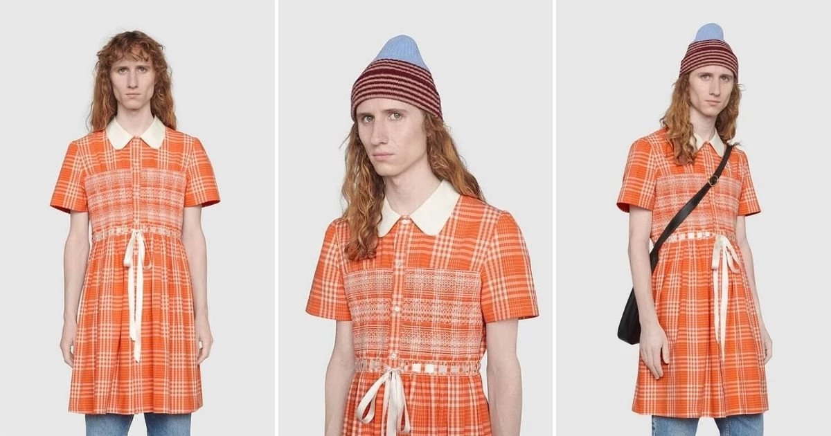 구찌가 출시한 남성용 원피스 ‘타탄 면 롱 스목 셔츠’는 성 고정관념을 타파하기 위해 만들어졌다. 남성적인(masculine) 성 정체성을 형성하는 고정관념에 대항하기 위해 제작됐다.