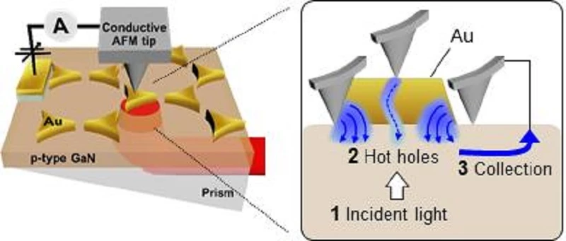 연구팀은 핫홀의 양상을 관찰하기 위해 금/p-질화갈륨(GaN)으로 만든 나노다이오드를 제작하고, 광전도 원자간력 현미경으로 이를 분석했다.