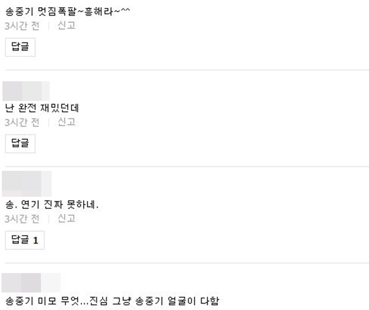 오랜만에 드라마에서 연기를 선보인 배우 송중기에 대한 반응이 엇갈렸다.