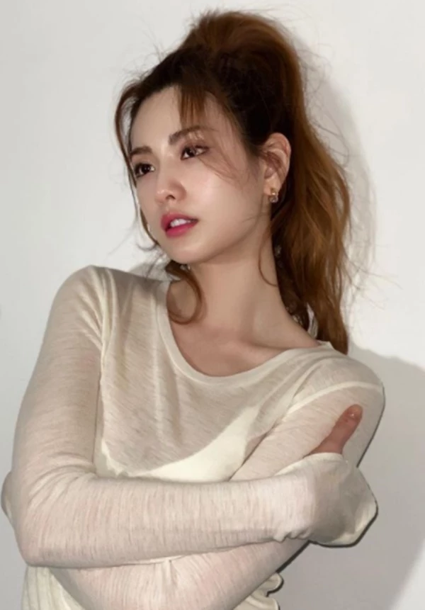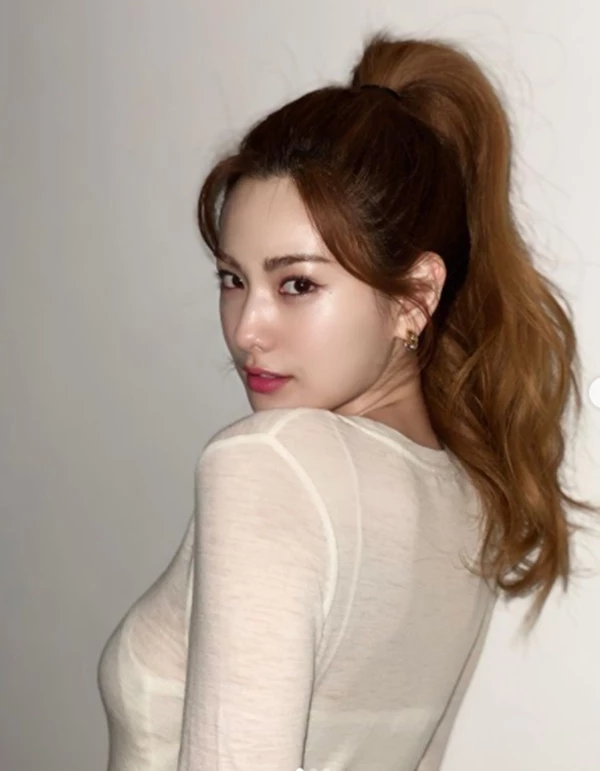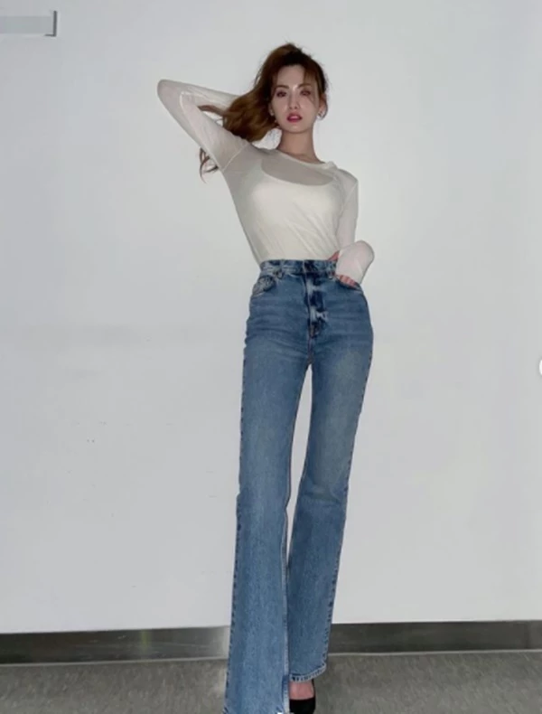 공개된 사진 속 나나는 청바지에 흰 시스루 티셔츠를 입고 카메라를 응시하며 우월한 비율을 자랑하고 있다.