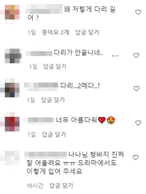 해당 사진을 접한 네티즌들은 "왜 저렇게 다리 길어?", "다리가 안 끝나네", "다리 2M", "너무 아름답다", "청바지 진짜 잘 어울려요", "드라마에서도 이렇게 입어 주세요" 등 반응을 보였다.
