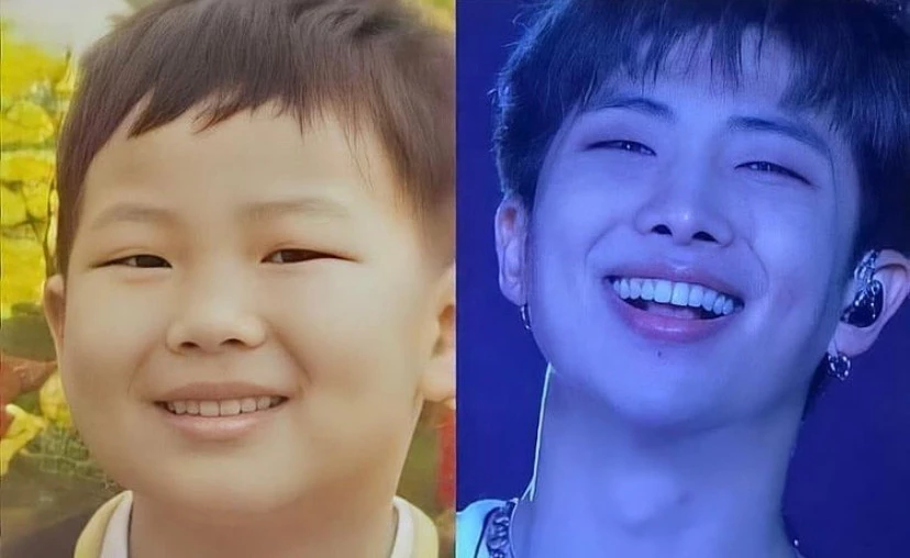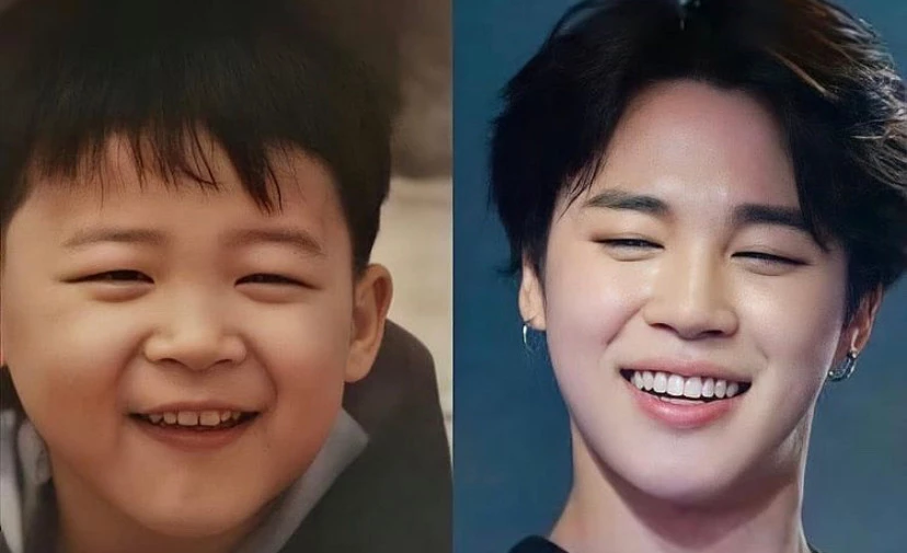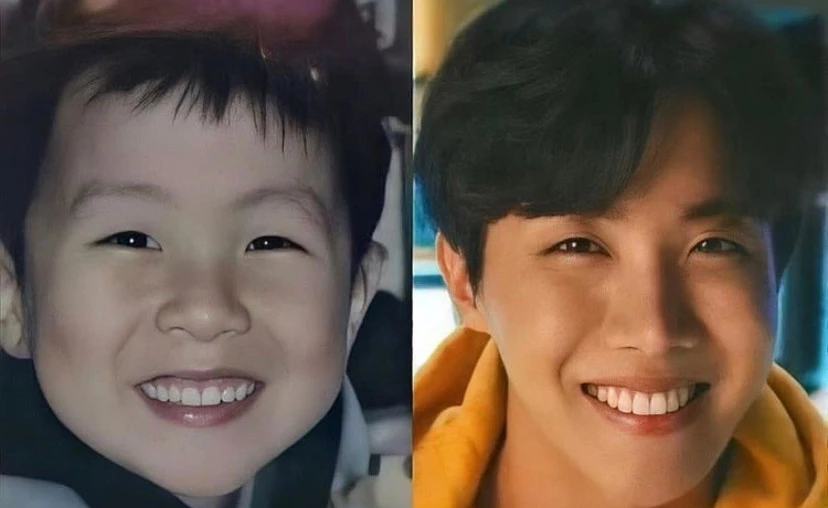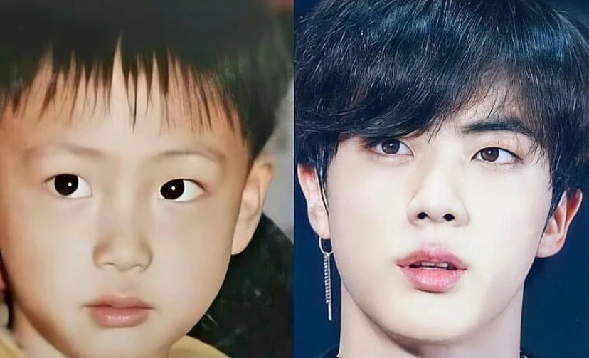 그 중에는 멤버 진의 어릴 때 모습과 현재 모습을 합성해놓은 사진도 있었다. 마치 친형제처럼 자연스럽게 닮은 모습이다.