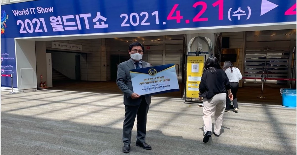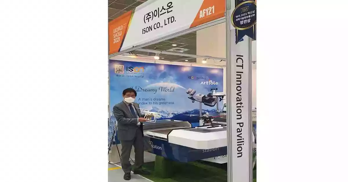이스온은 21일 세계최초 '승하강식 드론 무인충전 스테이션‘을 혁신적으로 개발한 공로를 인정받아 과학기술정보통신부장관상을 수여받았다.