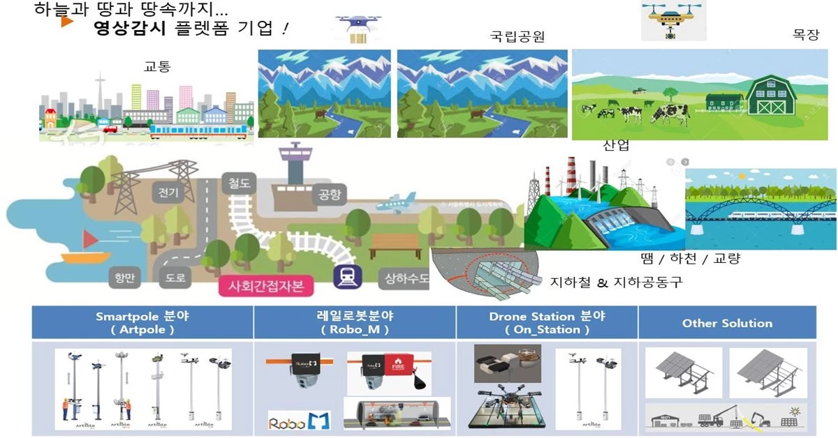 '승하강식 드론 무인충전 스테이션‘은 드론이 상시 높은 곳에서 설치된 승하강식 격납고에서 임무를 대기하고 있다가 중앙관제소 통제에 따라 격납고 문이 자동으로 열리고 드론이 지정된 항로로 자율 비행 감시정찰 임무를 24시간 수행하는 솔루션을 탑재할 예정이다.