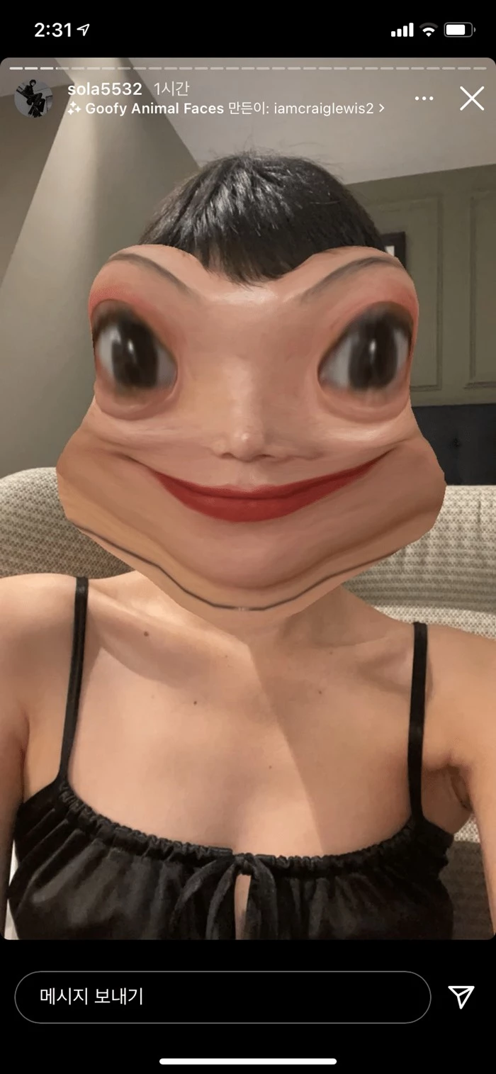 모델 최소라가 카메라 앱 효과로 큰 웃음을 선사했다.
