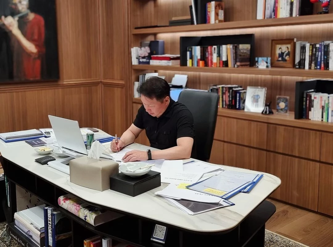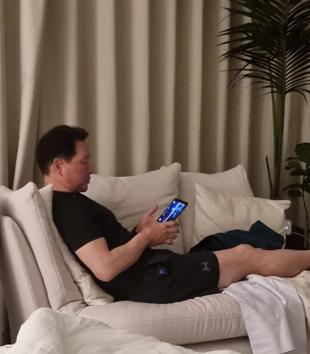 그는 배우 유태오와 함께 찍은 사진을 올리며 "좀비 영화 마니아들"이라고 짧은 글을 적어 올리기도 했다. 그는 1일 집무실에 앉아 서류를 읽고 있는 사진을 공개하며 야근 태그를 달고는 "설정 아님"이라고 강조했다.