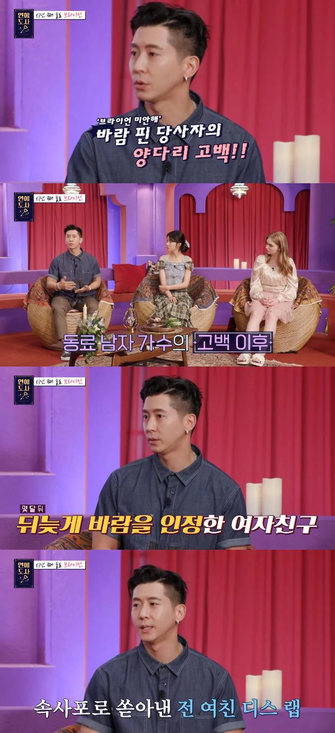 지난 20일 방송된 SBS플러스, 채널S '연애도사'에는 브라이언이 출연해 13년 동안 연애하지 못했다며 고민을 털어놨다. 이날 브라이언은 데뷔 후 2년 가까이 만난 여자친구가 자신과 친한 동료 가수와 바람을 피웠다고 밝혔다.