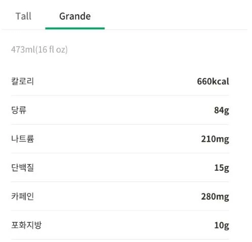 세 개 메뉴의 영양성분을 보면 열량과 당분이 굉장히 높음을 알 수 있다. 특히 아이스크림 블렌딩 콜드 브루의 열량(660kcal)과 유자 & 유스베리티 (HOT)의 당분(122g)은 가볍게 음료를 즐기기에는 부담스러운 수치임이 분명하다.