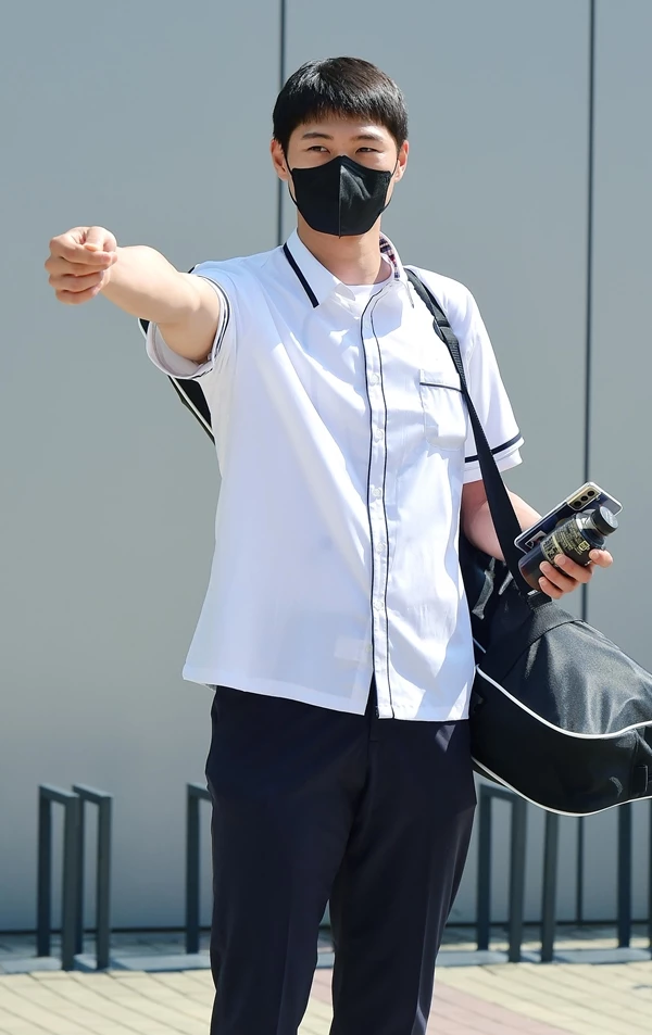 이날 그는 반팔로 된 교복 셔츠에 펜싱 장비가 들어간 것으로 보이는 가방을 메고 단정한 면모를 자랑했다. 여기에 흰 운동화를 신고 소년미 넘치는 반전 매력을 드러내 눈길을 붙잡았다.