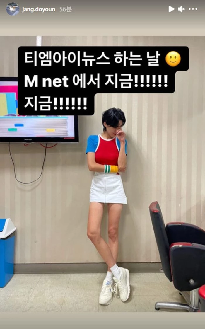 장도연은 11일 인스타그램 스토리에 전신이 나온 사진 한 장을 올렸다. 그는 자신이 MC로 출연 중인 엠넷 'TMI NEWS' 시청 독려 글을 남기며 대기실에서 찍은 사진 한 장을 공개했다.
