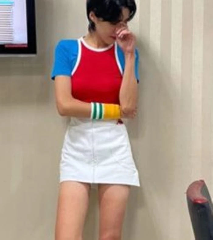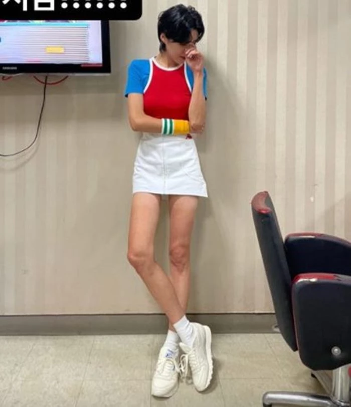 사진 속 장도연은 눈으로 보고도 믿기 힘든 엄청난 비율을 자랑하고 있다. 키가 174cm라고 알려진 장도연은 잘록한 허리에 가늘고 긴 팔, 다리를 보여주며 모델 뺨치는 전신 비율을 선보였다. 또 그는 타이트한 상의와 짧은 미니스커트를 함께 매치해 극세사 각선미를 더 돋보이게 했다.