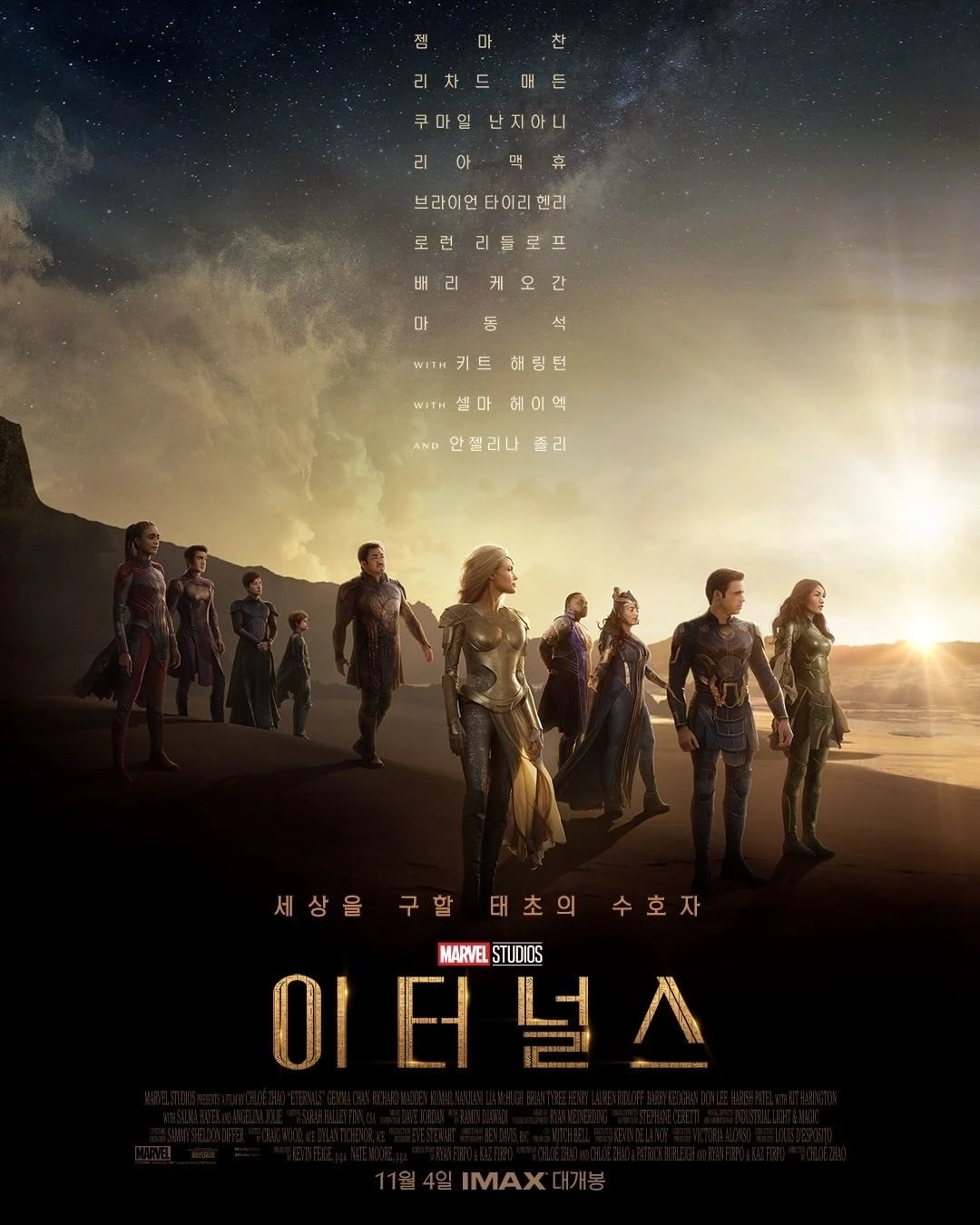 디즈니 측은 29일 "'어벤져스' 시리즈의 전설을 이어갈 영화 '이터널스'가 국내에서 11월 4일 개봉된다"는 말과 함께 메인 포스터를 공개했다.