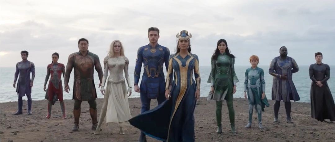 메인 포스터 속에는 10명의 '이터널스' 군단의 모습이 담겨 있다. 이 중 '길가메시' 역을 맡은 마동석은 위대한 전사 '테나' 역을 맡은 안젤리나 졸리 오른편에 서 있었다.
