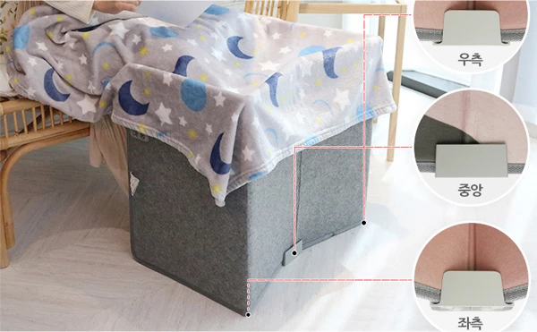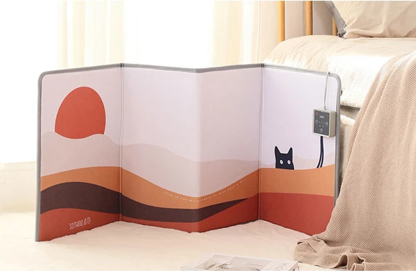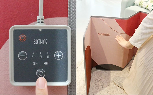 가로 130cm, 세로 50cm로 접이가 가능한 M자형 아코디언 구조로 발열되는 곳이 넓고 더 따뜻함을 느낄 수 있다. 같이 증정되는 플란넬 담요를 덮으면 보온효과가 90% 상승한다.