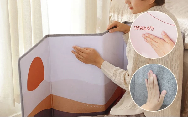 통기성이 좋은 폴리에스터 섬유 소재를 사용하여 가볍고 냄새가 없다. 깔끔한 모서리 마감으로 퀄리티 높은 완성도를 자랑한다. 피부 친화적으로 설계되어 제품을 직접 만질 수 있으며, 아이와 애완동물도 사용할 수 있다.