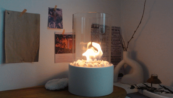 크림 화이트 톤의 무광 재질과 스톤의 조합으로 낮에는 앤틱한 인테리어 소품으로, 밤에는 낭만 있는 미니 캠프파이어로 변신한다. 불-명-상이 반복되면 정서적 안정감은 물론 우울증 치료에도 좋다.