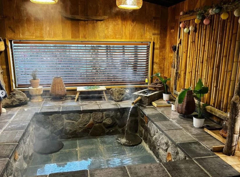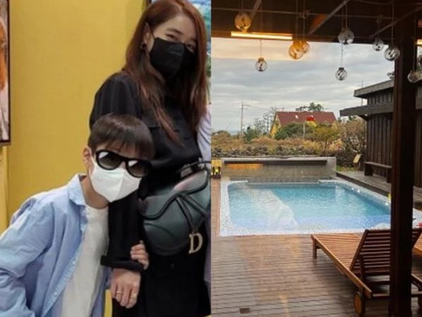 이민정 가족은 이국적인 분위기의 숙소에 머물렀다. 수영장과 노천탕까지 따로 있는 시설이었다.