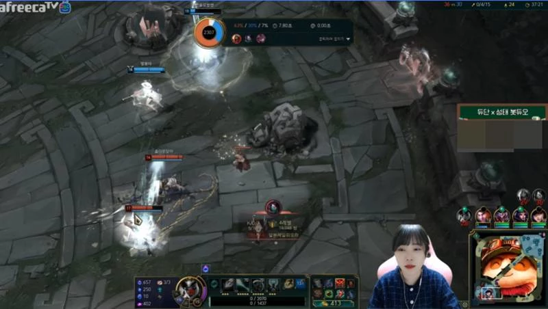 듀단은 지난 10일 새벽 아프리카TV BJ 킴성태와 게임 '리그 오브 레전드' 방송을 진행했다.